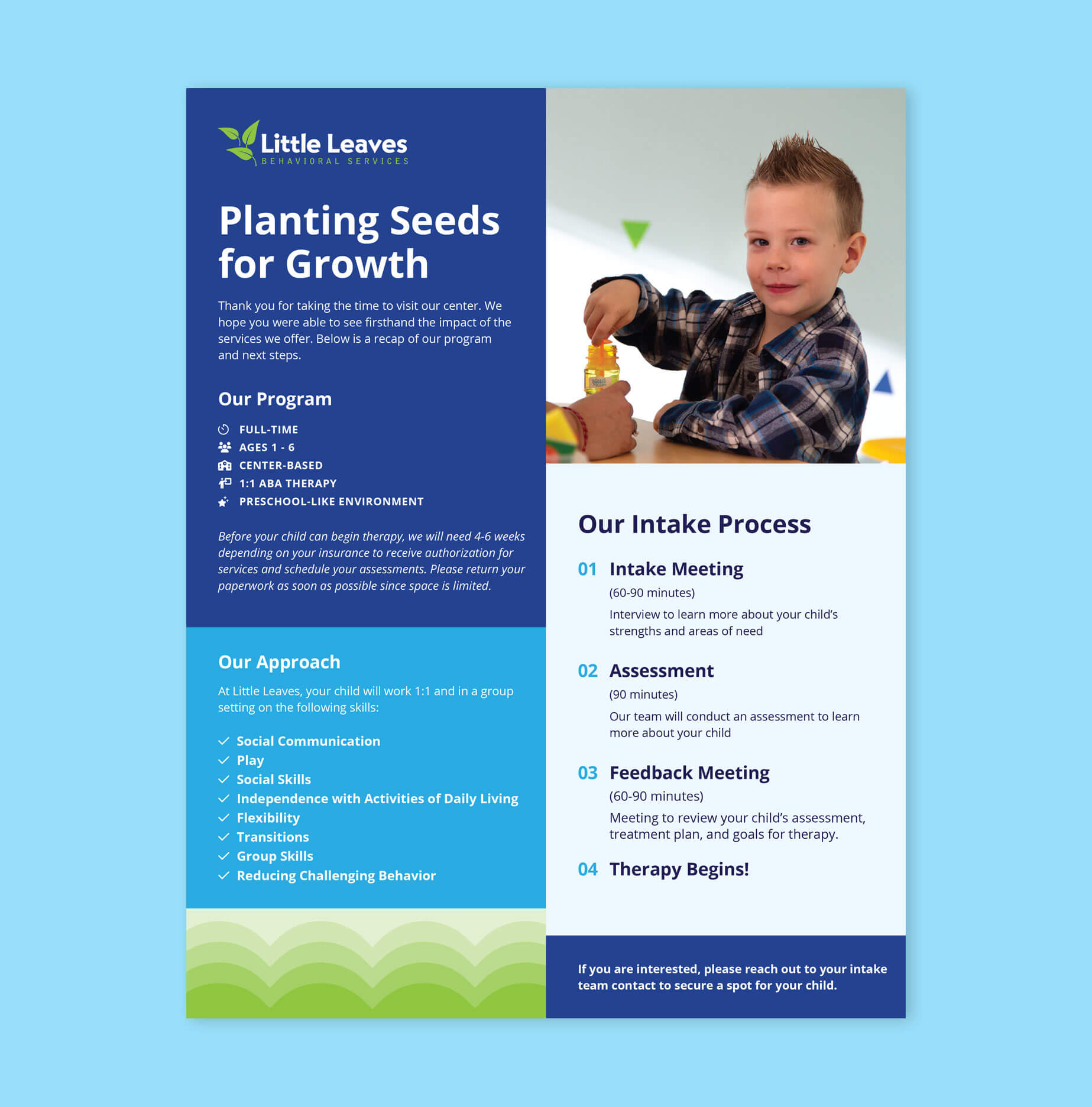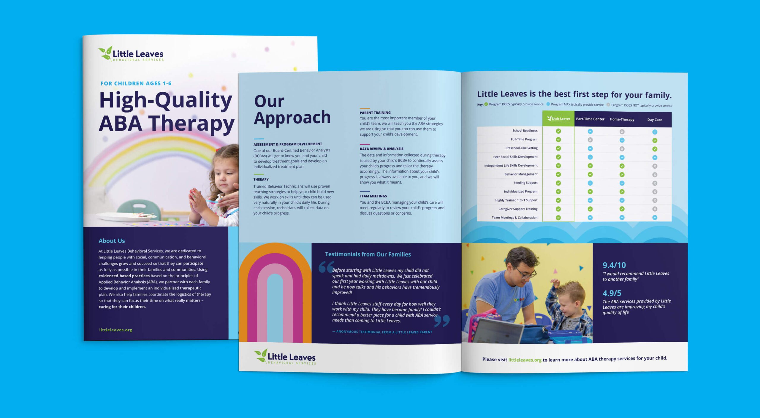 The refreshed Little Leaves brand successfully unified 14 facilities under one cohesive identity. The updated visuals provide warmth, energy, and professionalism, strengthening trust with families while empowering staff with clear, easy-to-use materials. From the welcome packet in a parent’s hands, to the classroom signage children interact with daily, the brand now delivers a seamless experience that reflects the mission and heart of Little Leaves.