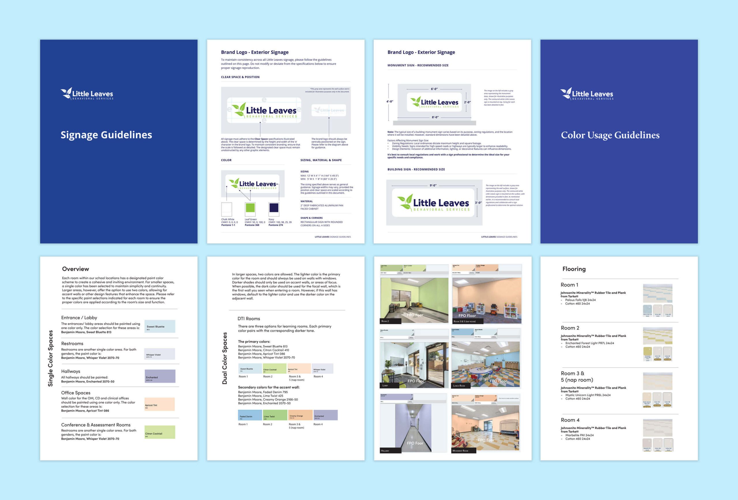 The client’s goal was to create cohesion across all Little Leaves centers while aligning with the corporate identity. They needed a toolkit that balanced professional credibility with playful energy, enabling each facility to implement consistent visuals across environments, signage, and communications. The work had to be scalable, user-friendly for staff, and adaptable to multiple formats.